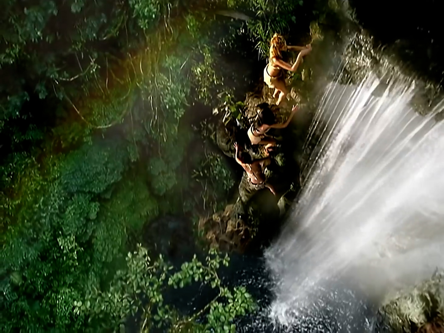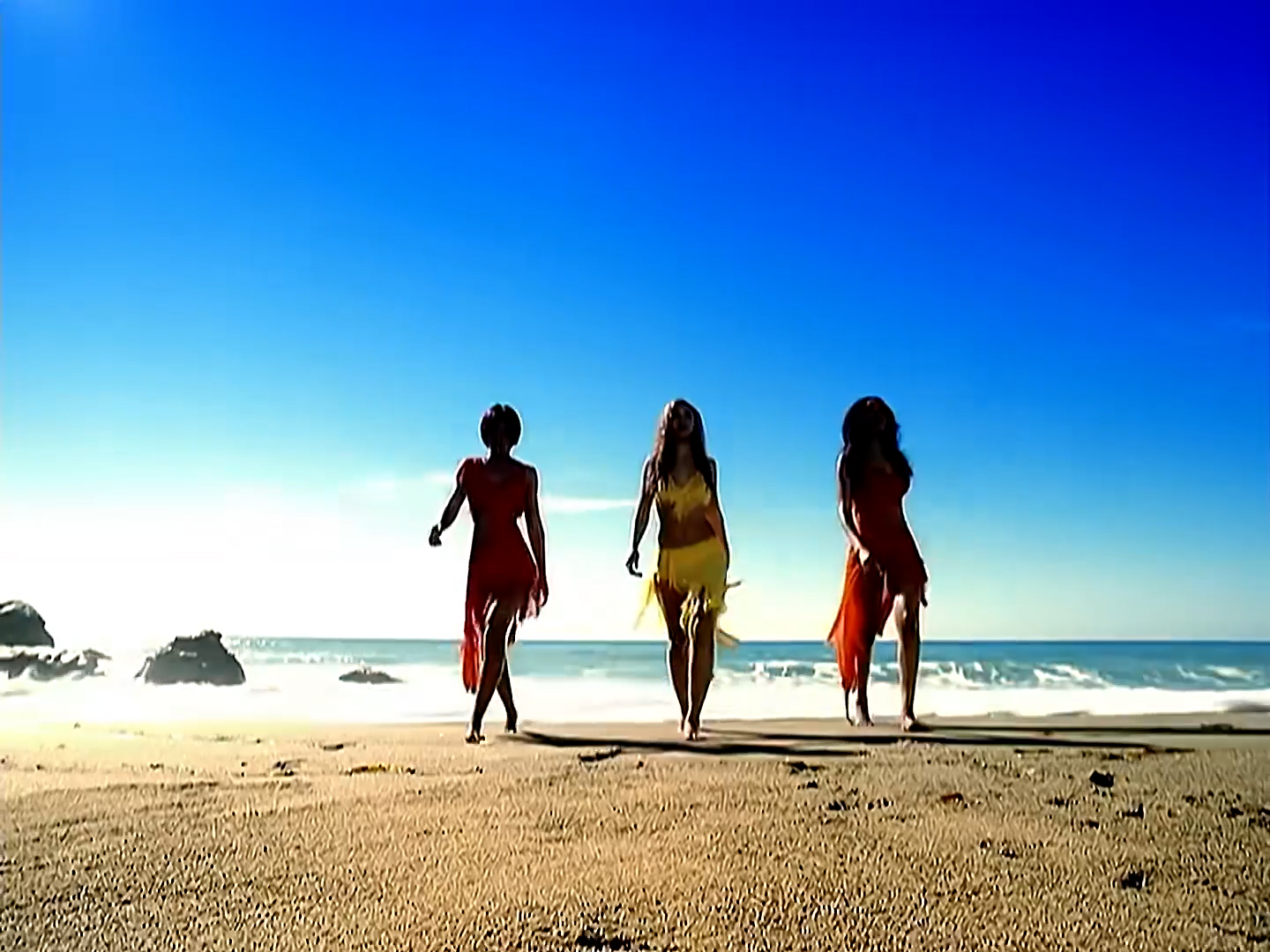 An accompanying music video for “Survivor” was directed by Darren Grant and filmed in various locations throughout Los Angeles County, California on January 27–29, 2001.[13] The clip is styled in the sense of three survivors living on an uninhabited island. It also shows a brief prelude to how the trio got shipwrecked. Following their shipwreck, they uncover an island where they change clothes and walk into a waterfall leading to a deserted temple where it transforms into a dance break. It storms on through the dance bridge and the prelude of the shipwreck. After this, a helicopter starts buzzing leading to where the members are racing out of the island for their escape.[13] External shots in the video were filmed at Point Dume State Beach on the on the coast of Malibu as well as the Los Angeles County Arboretum and Botanic Garden in Arcadia, with the rest of the sequences being filmed at the Los Angeles Center Studios.[19]